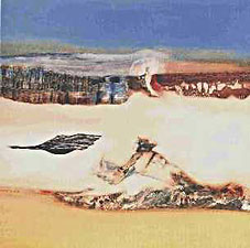 Querformat 60 x 60 cm - Öl auf Kunststoff. Hinter dem Namen der Galerie “Matou” verbarg sich der österreichische Maler Richard Matouschek. Und Seele, Betreiberin und Marketenderin dieser Etage war Gerda Meendsen - ich fand sie vor, an kleinen Figuren töpfernd, versunken, spielerisch ausprobierend.