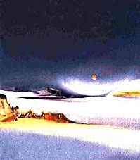 Verlassen wir doch einmal das Weltall, die Weltordnung. Folgen wir doch ganz konkret dem Kosmos in uns und seinem Chaos, das uns immer wieder Angst und mutig macht. Ein Bach aus Blut, ersticktes Leben, wesenlose Schönheit, der Schrei des Menschen, der die Welt begleitet, all dies ist auch hörbar in unserem inneren Kosmos. Du bist nur auf den ersten Blick eine Verführerin mit Lasurtechnik auf glänzenden Kunststoffplatten. - Stille, Schönheit, Harmonie oder Traum stehen nie für sich allein, unmittelbar dahinter sind Lärm, Häßlichkeit, Mißklang und Apokalypse. Deine sanften Tone, Verführerin (!), decken nicht das schrille Geräusch. Schicke weiter, Deine Seele, wie Du sagst, auf Reisen. - Vielen Dank !